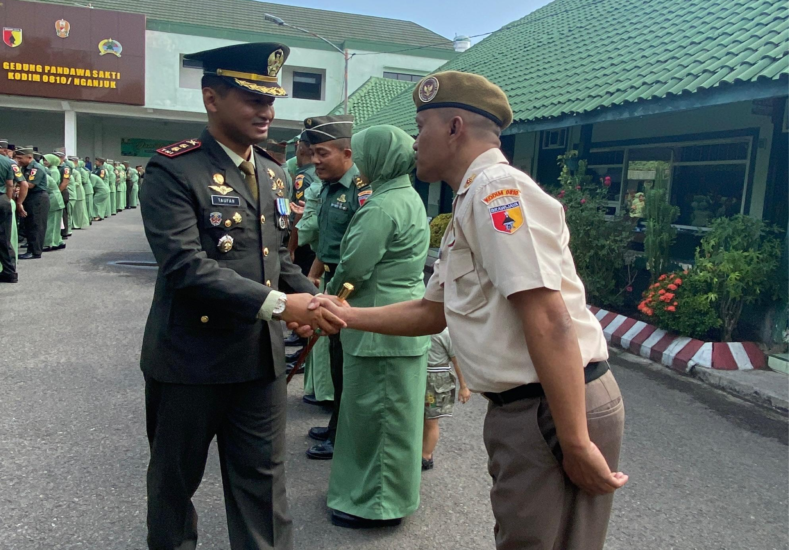 Upacara dipimpin langsung oleh Dandim 0810/Nganjuk, Letkol Arh M. Taufan Yudha Bhakti, S.I.P., S.T., dengan melibatkan jajaran Perwira Staf, Danramil, anggota Kodim, serta perwakilan Persit KCK.