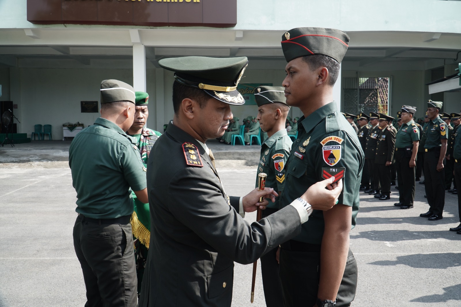 Dalam sambutannya, Dandim menyampaikan apresiasi dan ucapan selamat kepada seluruh prajurit yang menerima kenaikan pangkat.