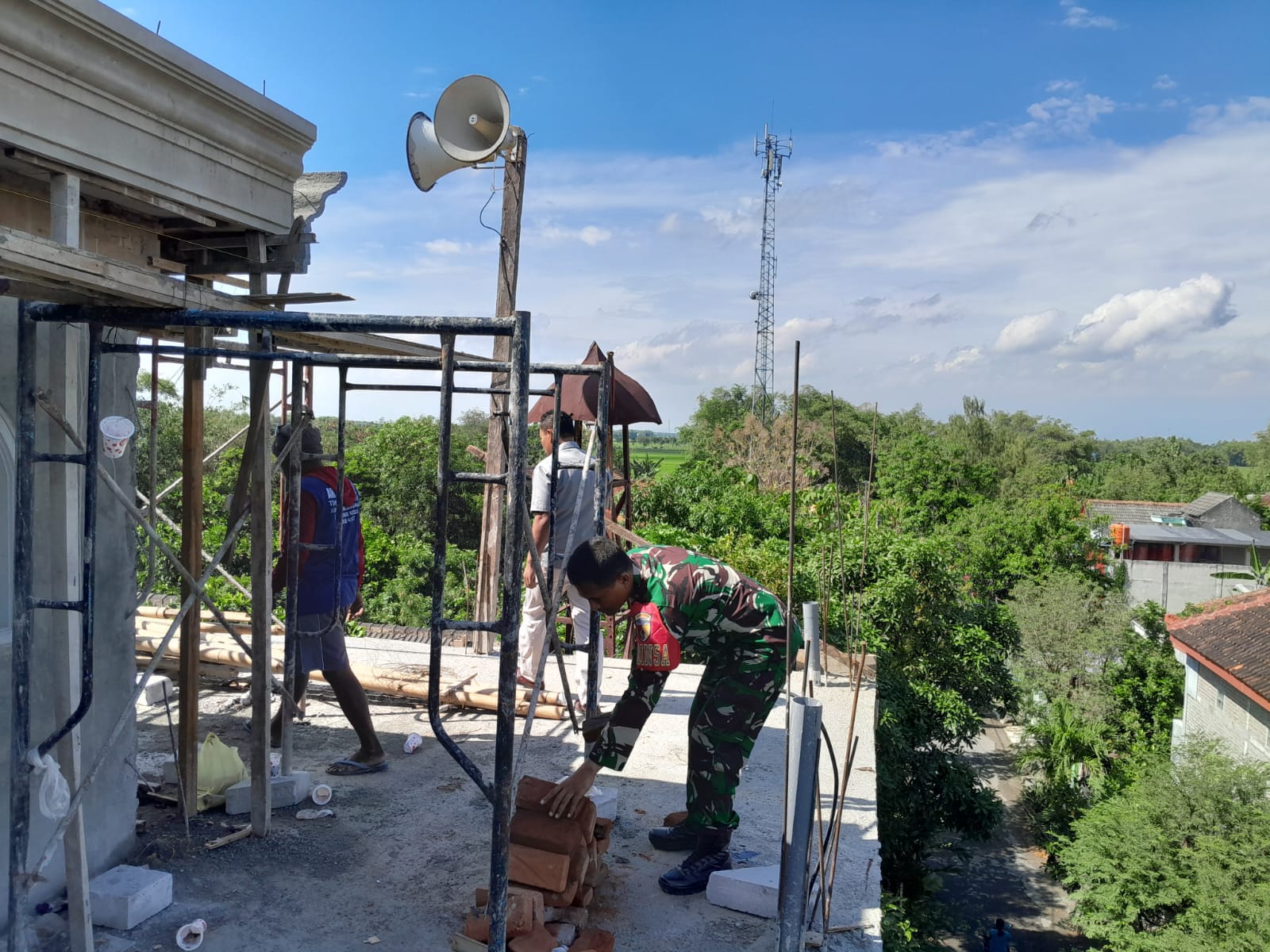 Serda Siswo Yuwono menyampaikan bahwa partisipasinya dalam kegiatan tersebut merupakan bentuk kepedulian TNI terhadap kebutuhan masyarakat, khususnya dalam pembangunan sarana ibadah.
