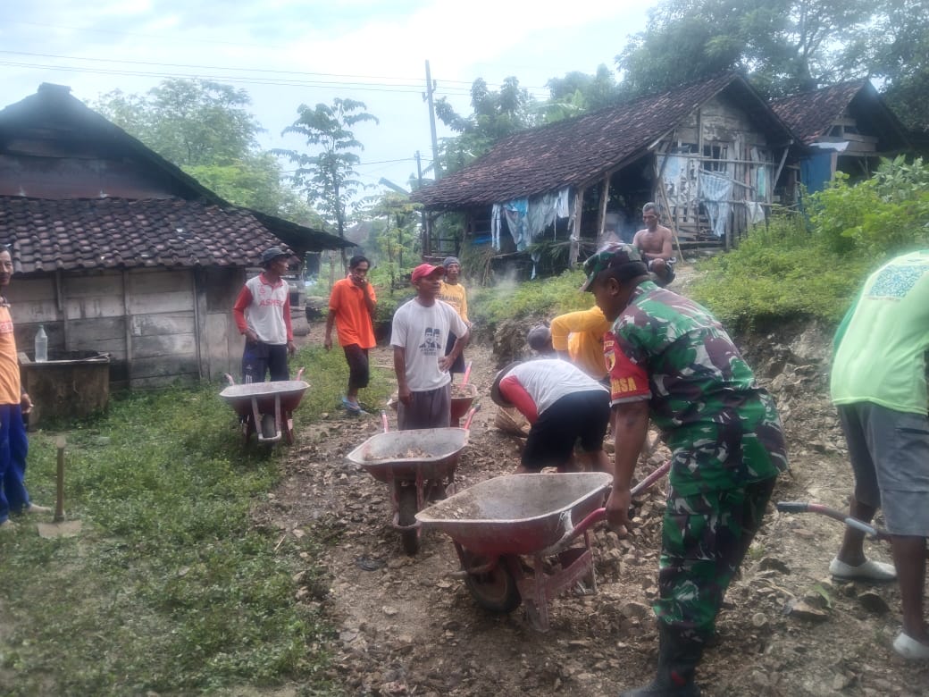 Nganjuk – Babinsa Desa Tempuran Koramil 0810/20 Ngluyu, Sertu Supriadi, bersama warga binaan melaksanakan kegiatan gotong royong memperbaiki jalan usaha tani di Desa Tempuran, Kecamatan Ngluyu, Kabupaten Nganjuk, Senin (13/10/2025).