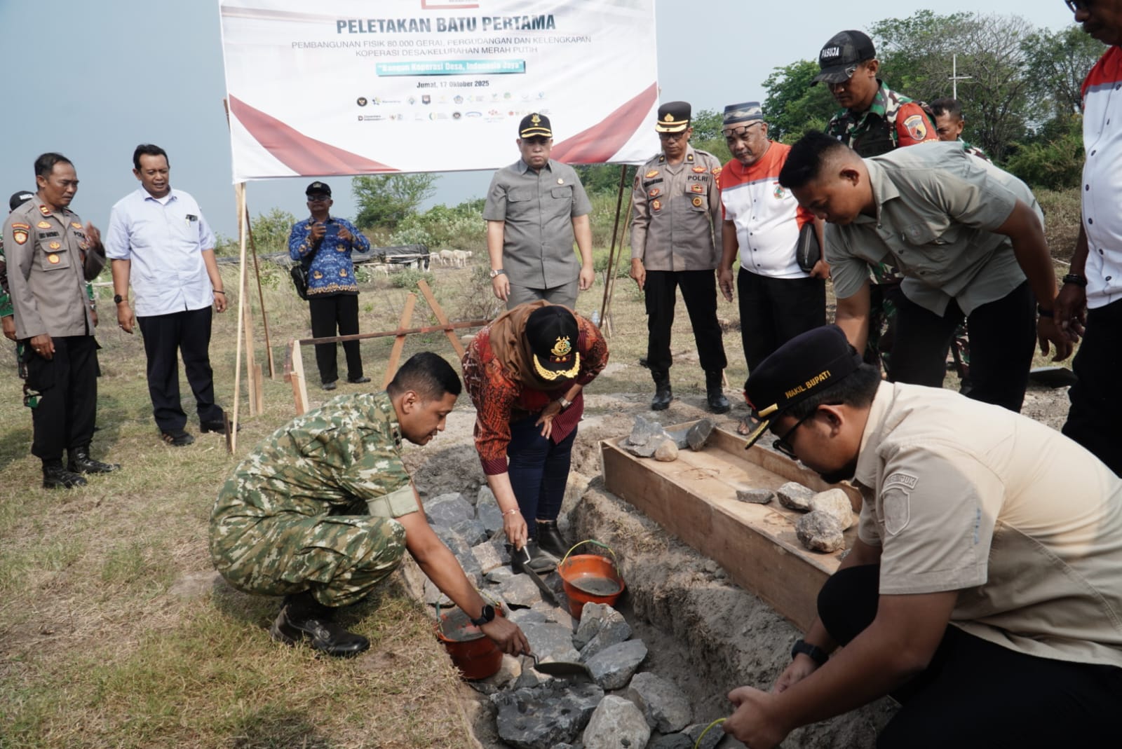 Selanjutnya, Menteri Koperasi RI Dr. Ferry Juliantono dalam sambutannya menjelaskan bahwa kegiatan peletakan batu pertama tersebut merupakan tindak lanjut dari Instruksi Presiden Nomor 9 Tahun 2025 dan Peraturan Presiden Nomor 9 Tahun 2025 tentang percepatan pembentukan Koperasi Desa/Kelurahan Merah Putih.