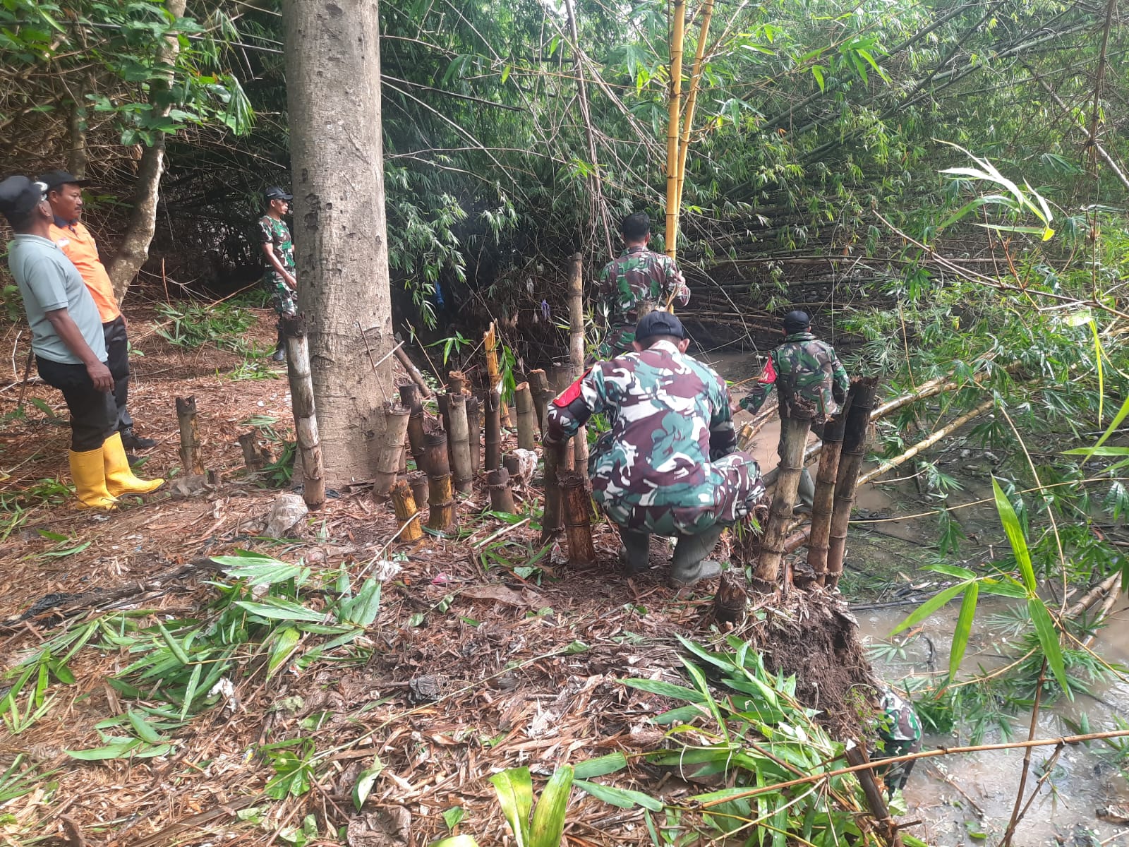 Kegiatan ini melibatkan personel Koramil 0810-02/Bagor bersama warga setempat yang bekerja bahu membahu membersihkan sampah dan potongan bambu yang menumpuk di sepanjang aliran sungai. Semangat gotong royong tampak jelas dalam aktivitas yang berlangsung penuh kekompakan tersebut.