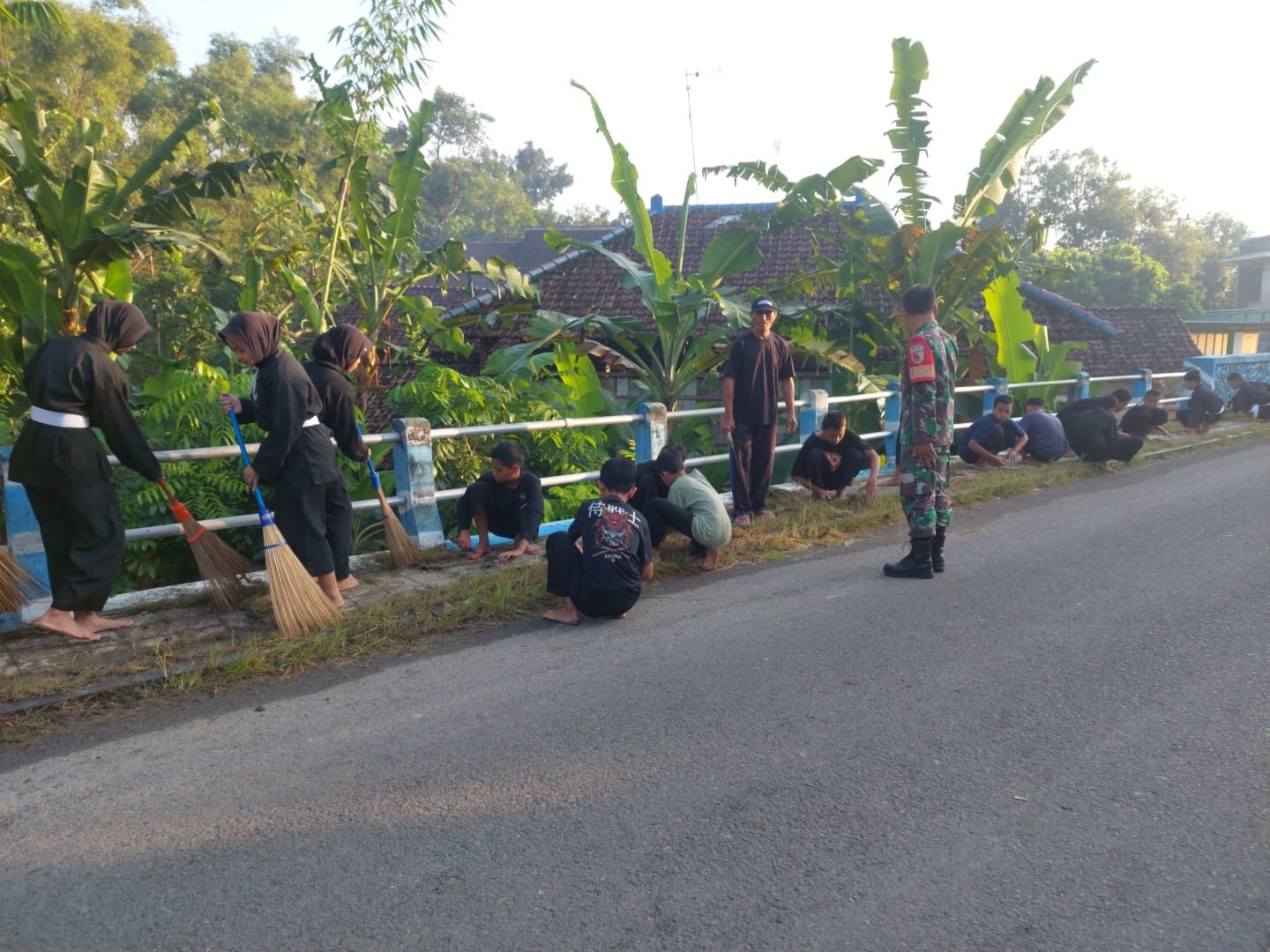 Nganjuk — Babinsa Koramil 0810/20 Ngluyu, Sertu Gunawan melaksanakan kegiatan karya bakti (Karbak) pembersihan lingkungan bersama warga dan anggota Persaudaraan Setia Hati Terate (PSHT) di Desa Ngluyu Kecamatan Ngluyu. Minggu (16/11/2025)
