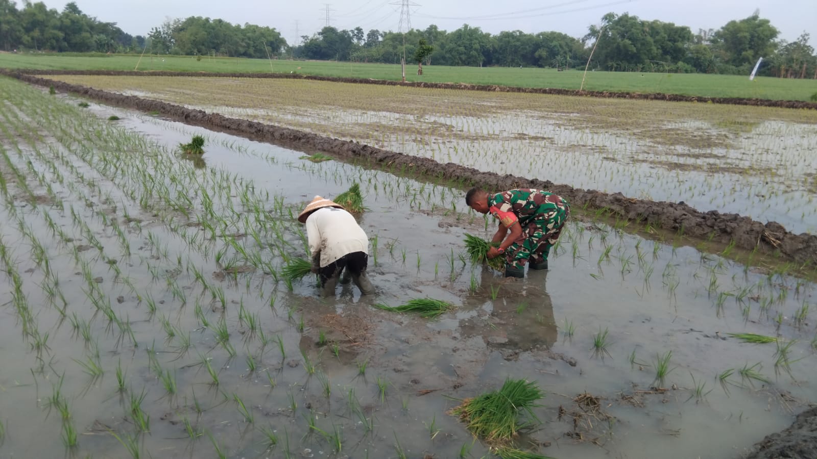 Kegiatan tersebut merupakan bagian dari pembinaan teritorial Babinsa dalam mendukung program ketahanan pangan di wilayah binaan. Dengan turun langsung ke sawah, Babinsa tidak hanya membantu secara fisik, tetapi juga memberikan semangat dan motivasi kepada para petani agar terus berkomitmen mengelola lahan pertanian secara optimal.