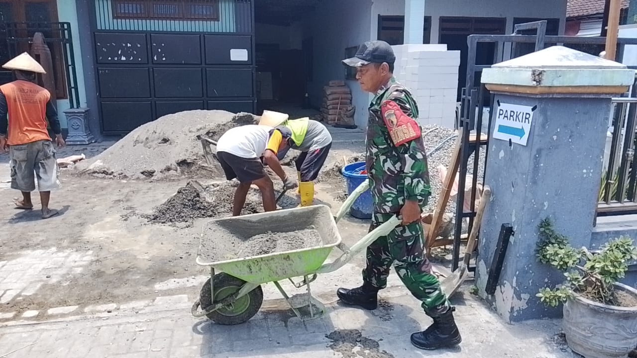 Nganjuk — Babinsa Koramil 0810/02 Bagor, Kodim 0810/Nganjuk, Sertu Budi Prastiono melaksanakan kegiatan karya bakti bersama warga Desa Pesudukuh, Kecamatan Nganjuk. Kegiatan ini difokuskan pada pembersihan saluran pembuangan rumah tangga di lingkungan dusun setempat.