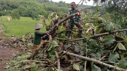 Anggota Koramil 0810-05/Sawahan, Sertu suyadi melaksanakan kegiatan kerja bakti bersama masyarakat di Desa margopatut ,Kecamatan Sawahan Kabupaten Nganjuk