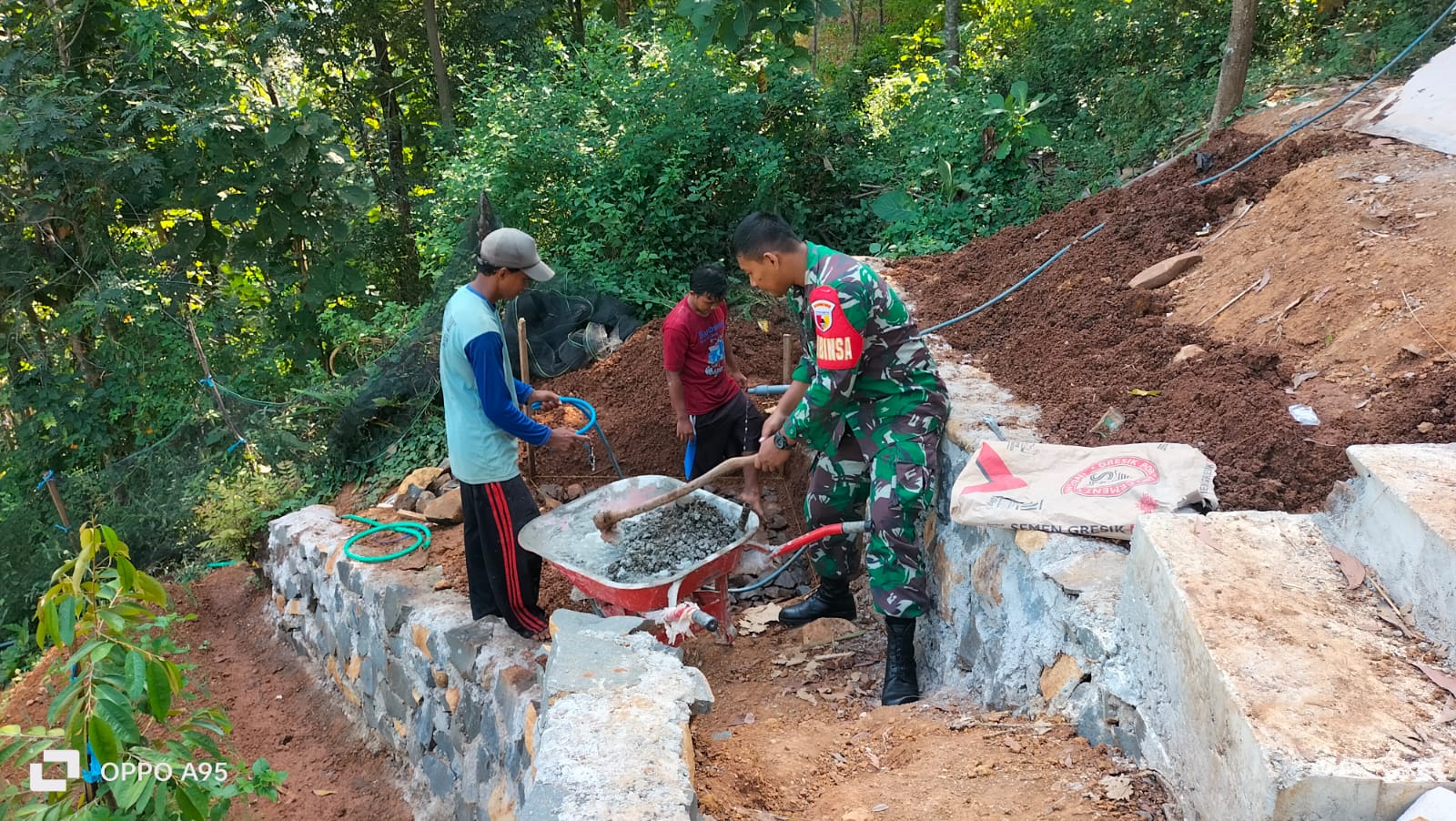 Antisipasi Longsor | Babinsa Bantu Pembuatan Tanggul Penahan Tanah di Kawasan Teras Siring