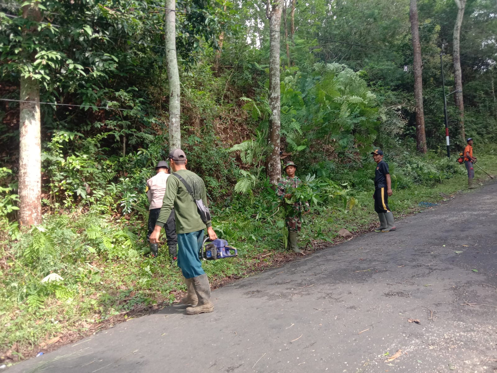 Kegiatan kerja bakti tersebut meliputi pembersihan kanan dan kiri jalan, mulai dari pemangkasan ranting pohon hingga pengangkutan sampah yang berserakan di pinggir jalan. Kerja bakti dilakukan sebagai upaya menjaga kebersihan dan keamanan jalan, terutama di musim hujan yang rawan pohon tumbang dan ranting patah akibat hujan deras disertai angin kencang.