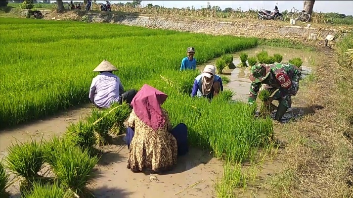 Pendampingan dilaksanakan dengan turut serta membantu petani melakukan cabut bibit padi pada musim tanam. Dengan penuh semangat, Sertu Agus Heriyanto bersama para petani turun langsung ke sawah untuk memastikan bibit padi siap ditanam dengan baik, sehingga diharapkan dapat meningkatkan pertumbuhan tanaman dan hasil panen.