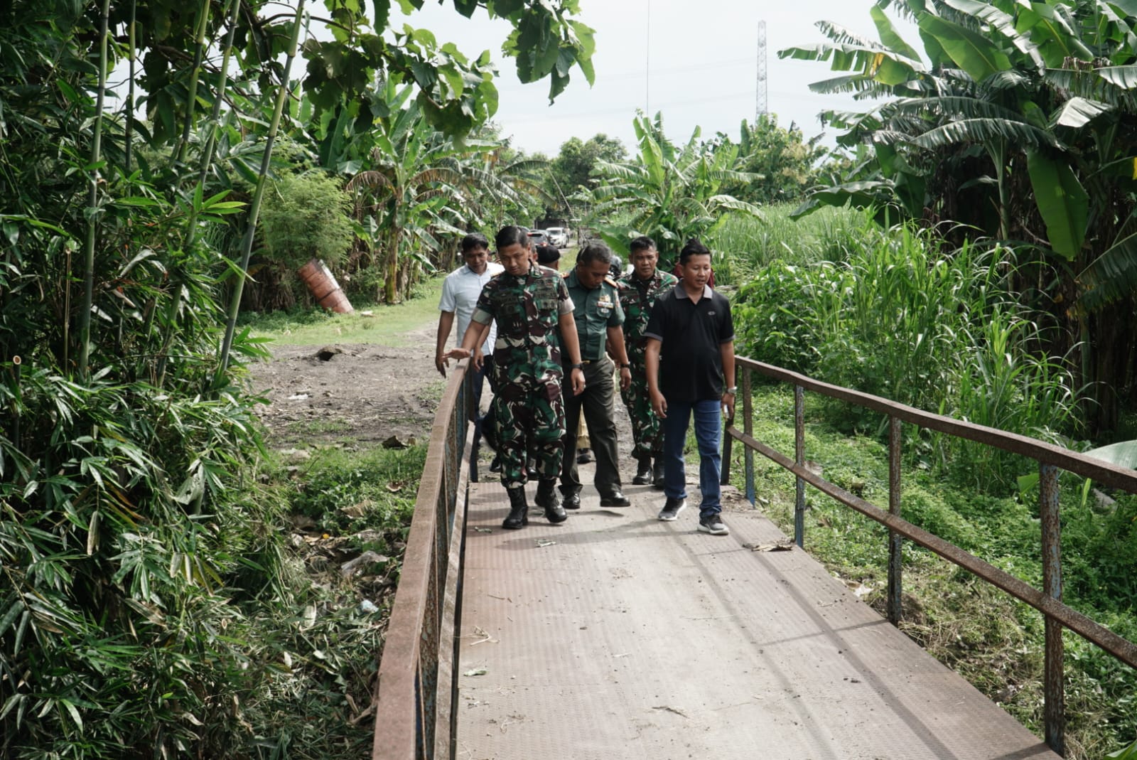 Rombongan tiba di lokasi KDKMP sekitar pukul 13.00 WIB dan langsung meninjau proses pembangunan sebagai langkah memastikan pekerjaan berjalan sesuai rencana dan tanpa hambatan. Selanjutnya, pukul 14.15 WIB, Dandim meninjau jembatan gantung dengan ukuran lebar 2 meter dan panjang 60 meter yang menghubungkan warga Desa Bagorwetan dengan wilayah Rejoso dan Nganjuk Kota.
