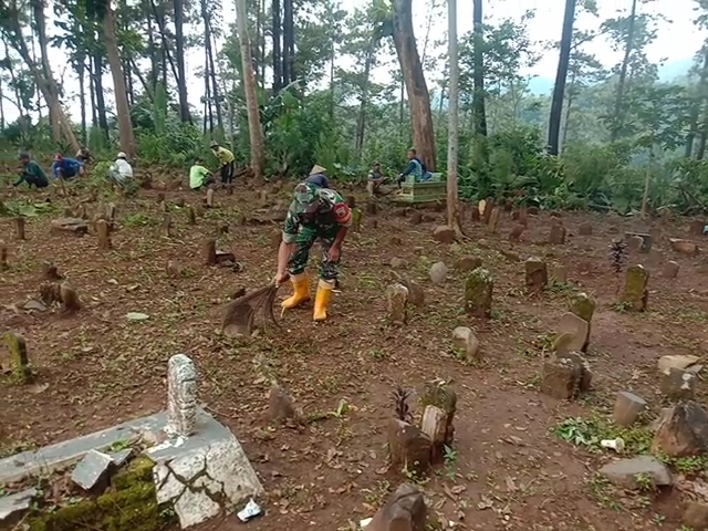 Lebih lanjut, ia menjelaskan bahwa kerja bakti ini bukan hanya sekadar membersihkan makam, tetapi juga sebagai sarana untuk mempererat silaturahmi dan menumbuhkan semangat gotong royong antara Babinsa dan masyarakat. Kebersamaan yang terjalin diharapkan mampu memperkuat rasa kekeluargaan, saling membantu, serta menjaga kerukunan antarwarga.