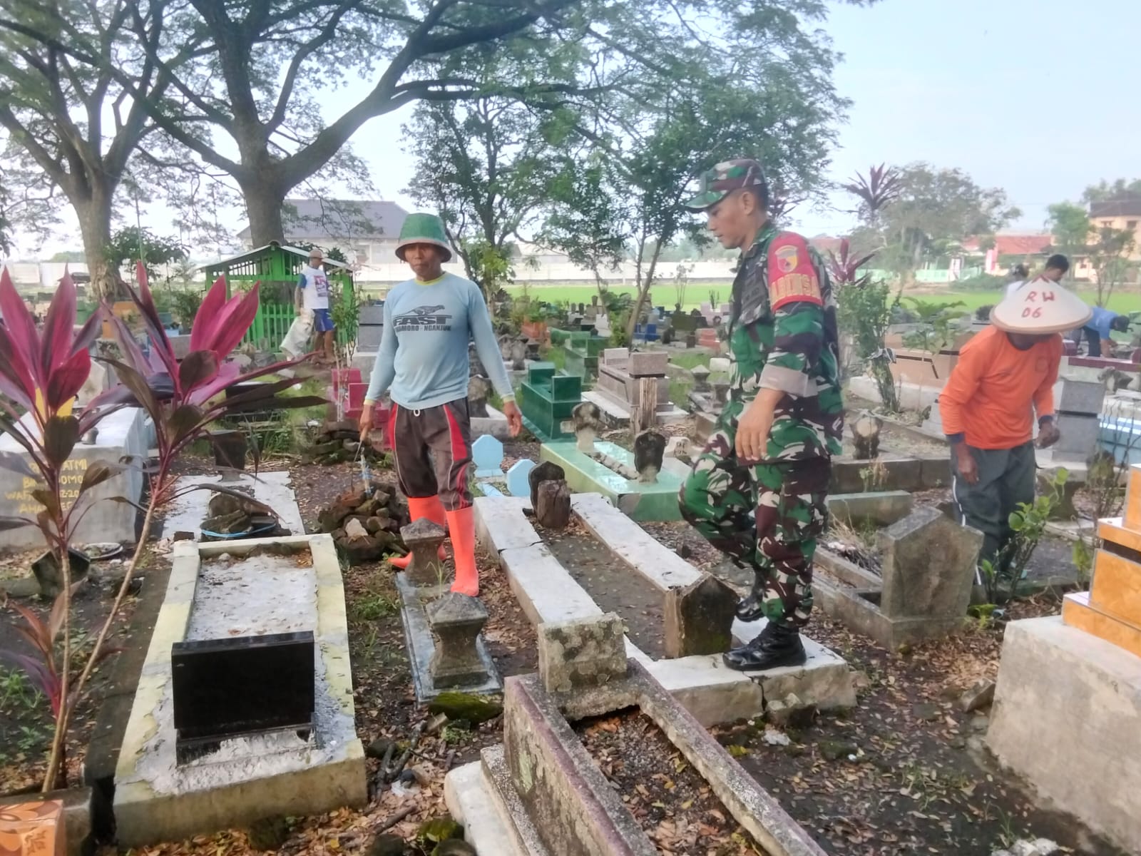 “Menjelang bulan suci Ramadhan, biasanya masyarakat banyak yang berziarah ke makam keluarga. Untuk itu kami bersama warga melaksanakan pembersihan agar area pemakaman terlihat bersih, rapi dan nyaman,” ujar Babinsa.