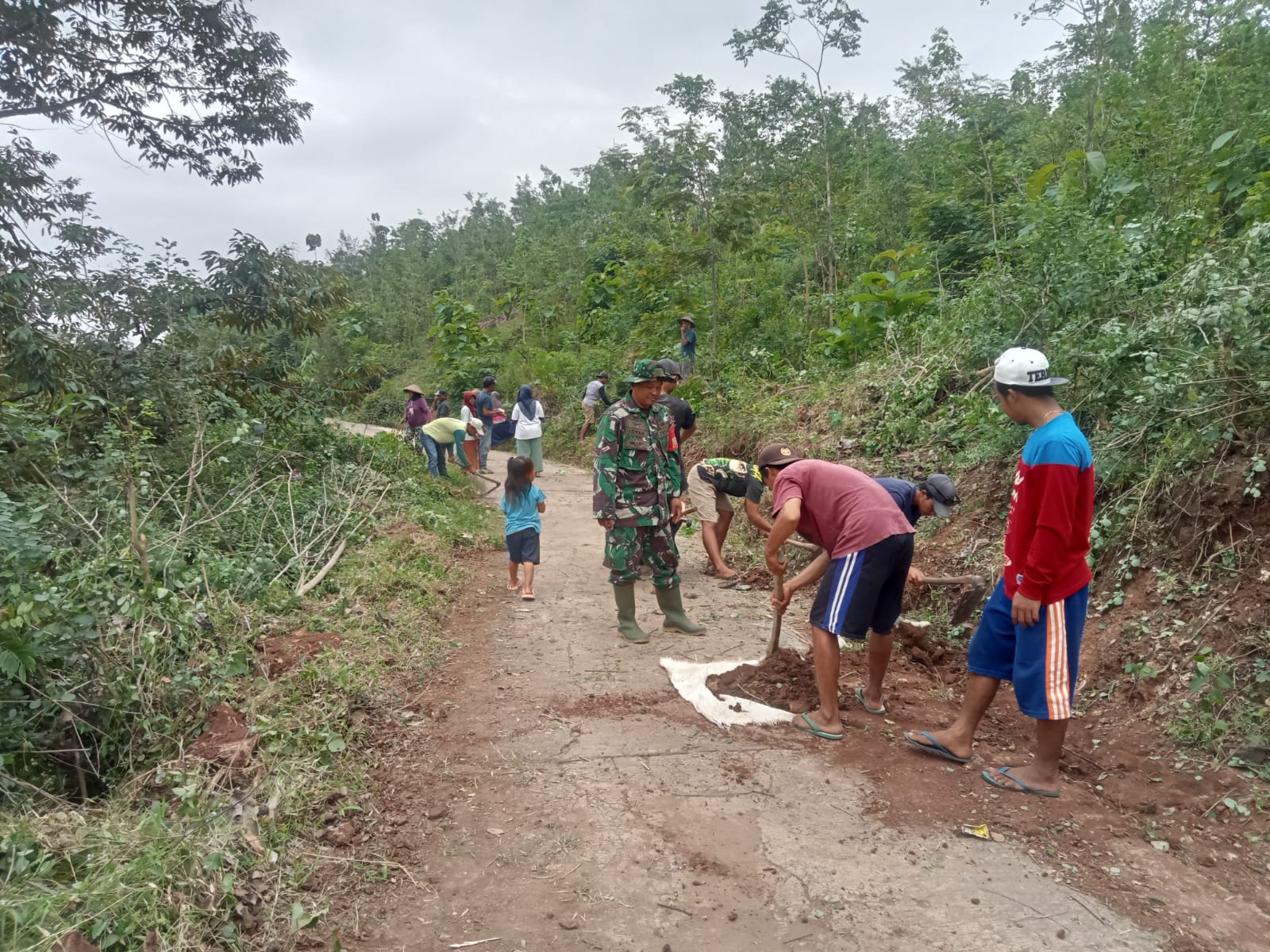 Kegiatan karya bakti tersebut dimulai sejak pagi hari pukul 07.00 WIB dengan melibatkan puluhan warga dari berbagai unsur masyarakat. Dengan penuh semangat kebersamaan, Babinsa bersama warga tampak bahu-membahu membersihkan jalan desa, merapikan bahu jalan, mengangkat tanah dan rumput liar, serta membersihkan saluran air di sekitar lingkungan permukiman. Suasana gotong royong terlihat sangat kental dalam kegiatan tersebut, mencerminkan semangat persatuan dan kepedulian sosial yang terus terjaga di tengah masyarakat Desa Kuncir.