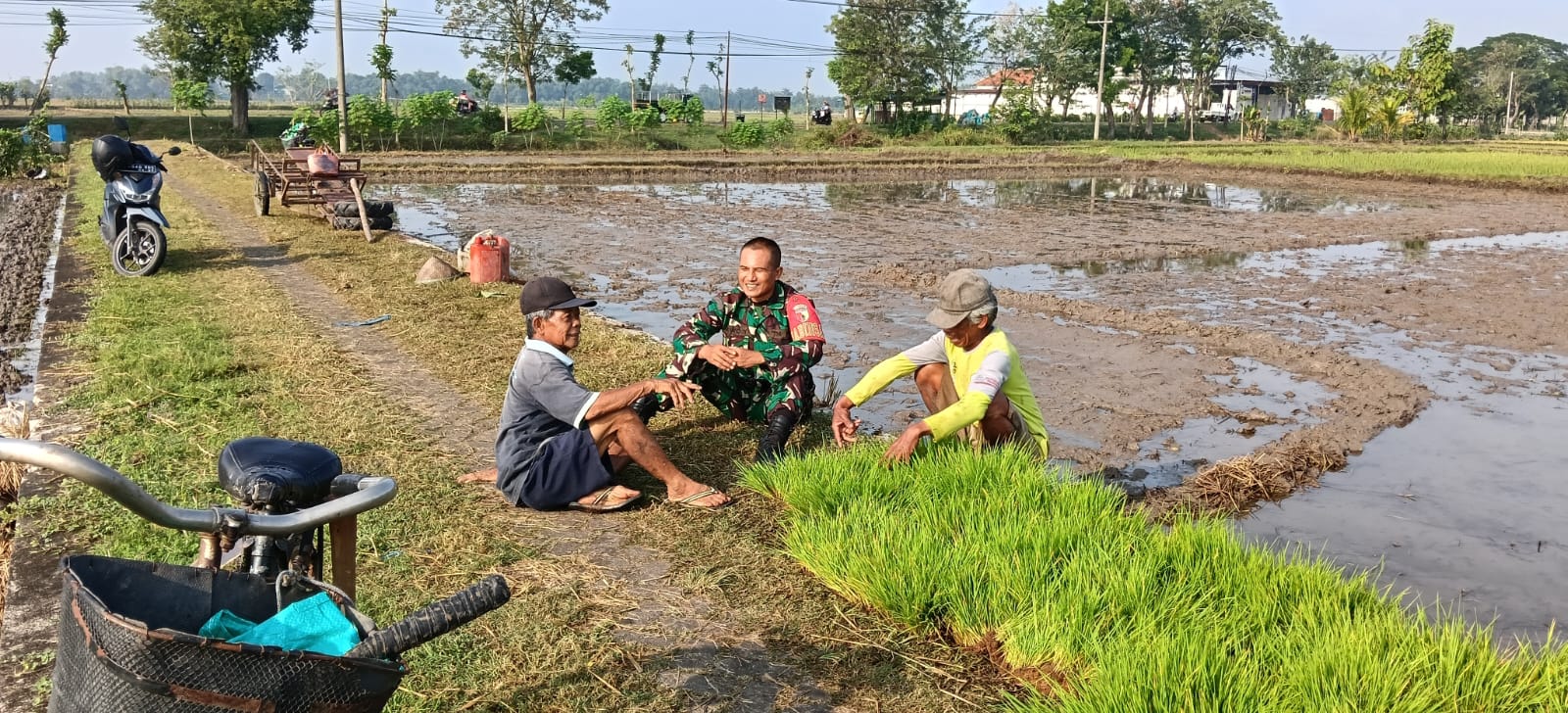 Kegiatan komsos ini dilakukan di sela-sela aktivitas para petani yang sedang menggarap sawah. Dalam kesempatan tersebut, Babinsa berdialog langsung dengan petani terkait dengan kondisi irigasi, ketersediaan pupuk, hingga kendala yang dihadapi saat musim tanam.