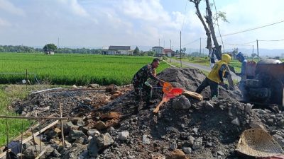 Kehadiran Babinsa di lokasi merupakan bagian dari tugas pembinaan teritorial guna memastikan kegiatan pembangunan berjalan sesuai rencana.