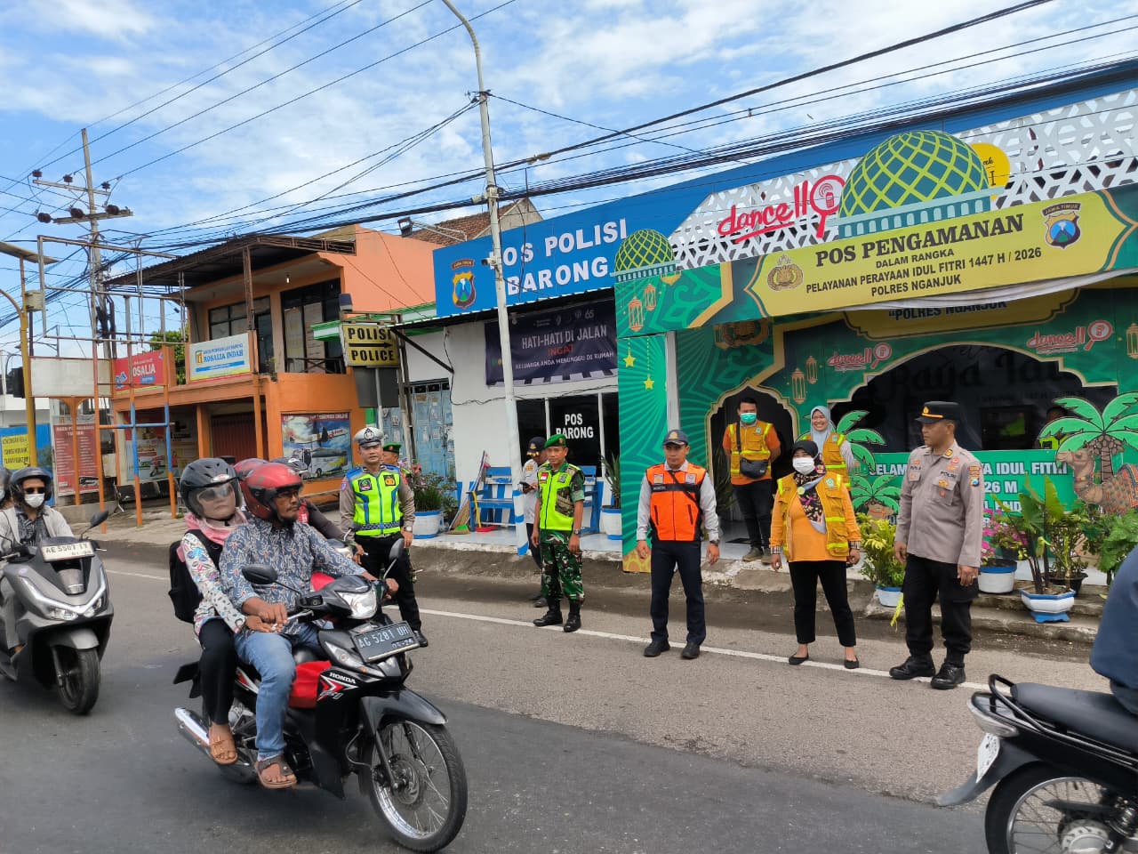 Nganjuk – Dalam rangka memberikan rasa aman dan nyaman kepada masyarakat yang melaksanakan arus mudik Lebaran Idul Fitri 1447 H / 2026 M, sinergitas TNI, POLRI, dan instansi terkait terus ditingkatkan melalui pengamanan terpadu di Pos Pengamanan Barong kec Tanjunganom, Minggu (22/03/2026).
