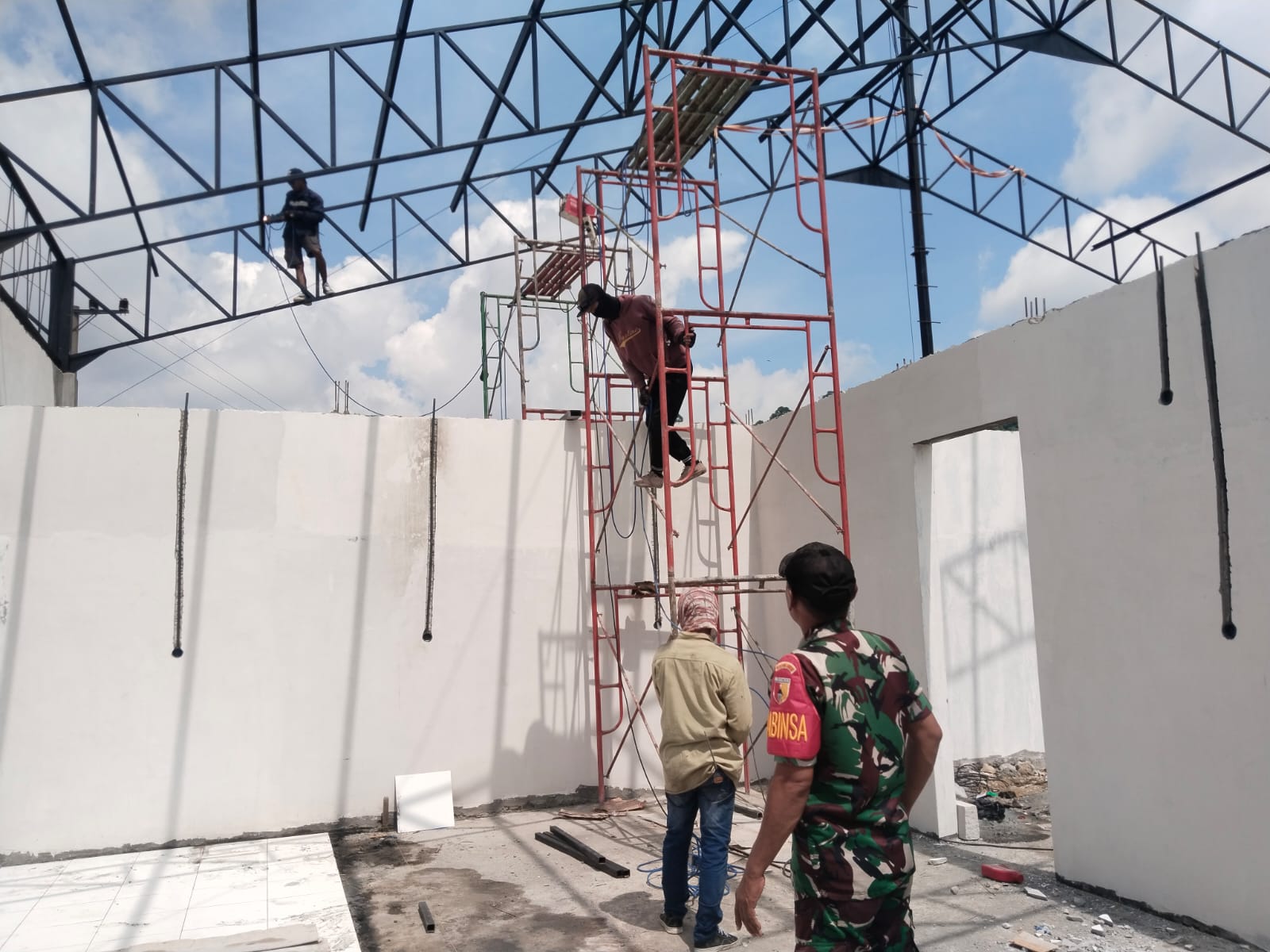 Dalam kegiatan tersebut, Serka Sutiono turun langsung ke lokasi pembangunan untuk memantau perkembangan pekerjaan sekaligus mendampingi para pekerja yang sedang melaksanakan pembangunan fasilitas koperasi desa tersebut.