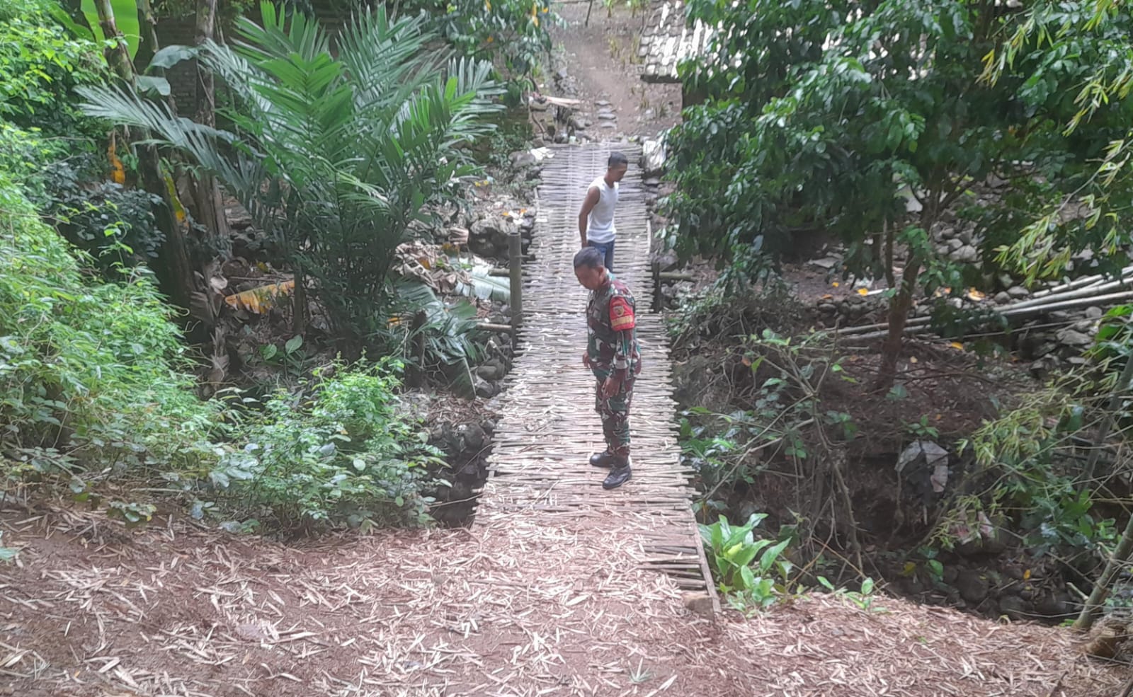 BABINSA TINJAU JEMBATAN BAMBU PENGHUBUNG MASYARAKAT ANTAR DUSUN