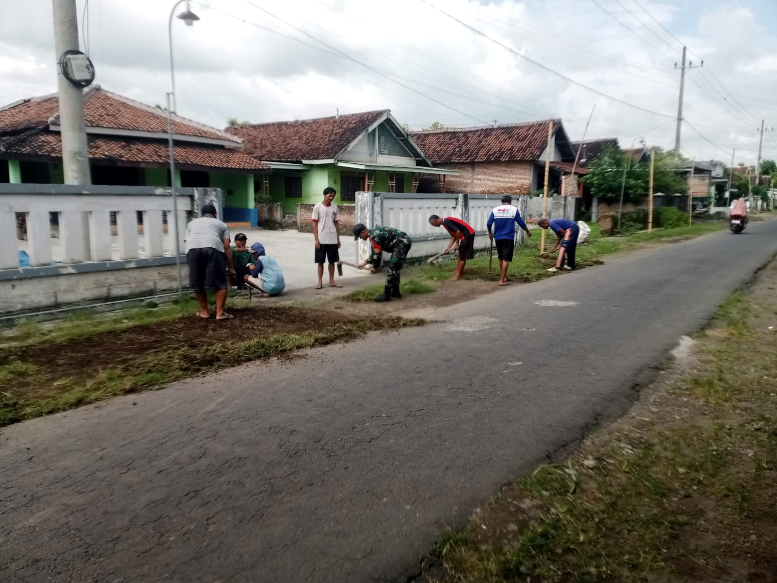 Kebersamaan Babinsa dan Warga, Koramil 0810/10 Tanjunganom Gelar Kerja Bakti di Desa Kedungombo
